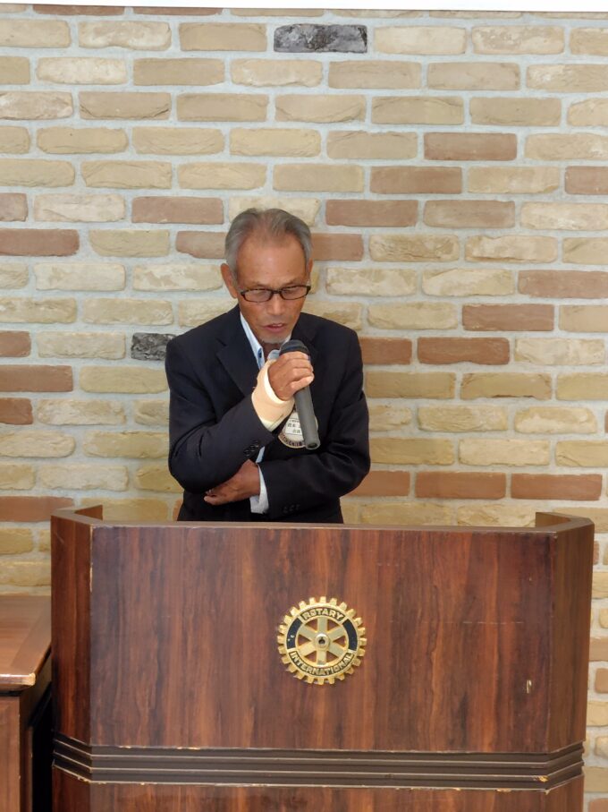 卓話者の勝谷様です。なぜか画像が荒くなってしまっていますが、ご容赦ください。